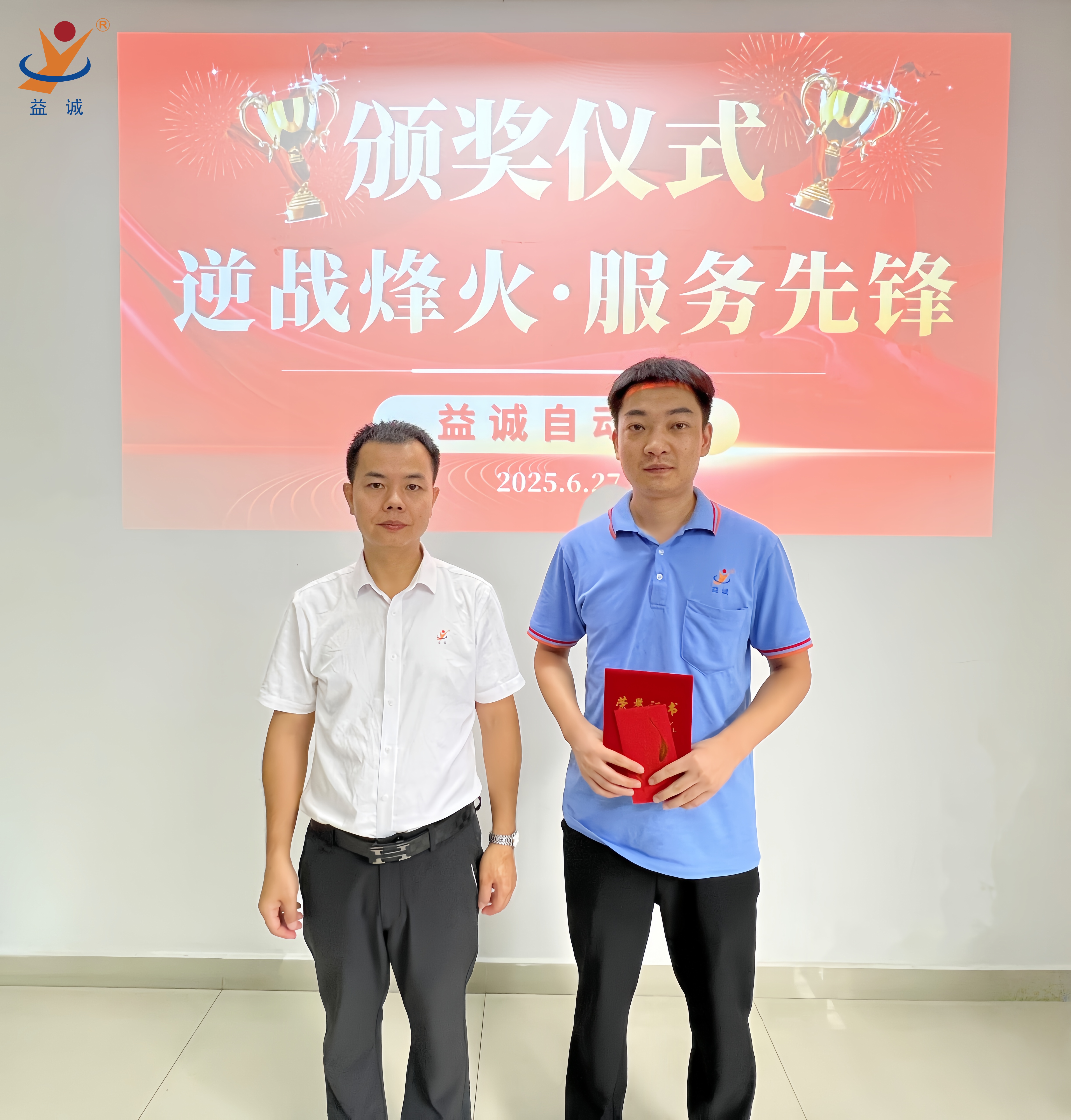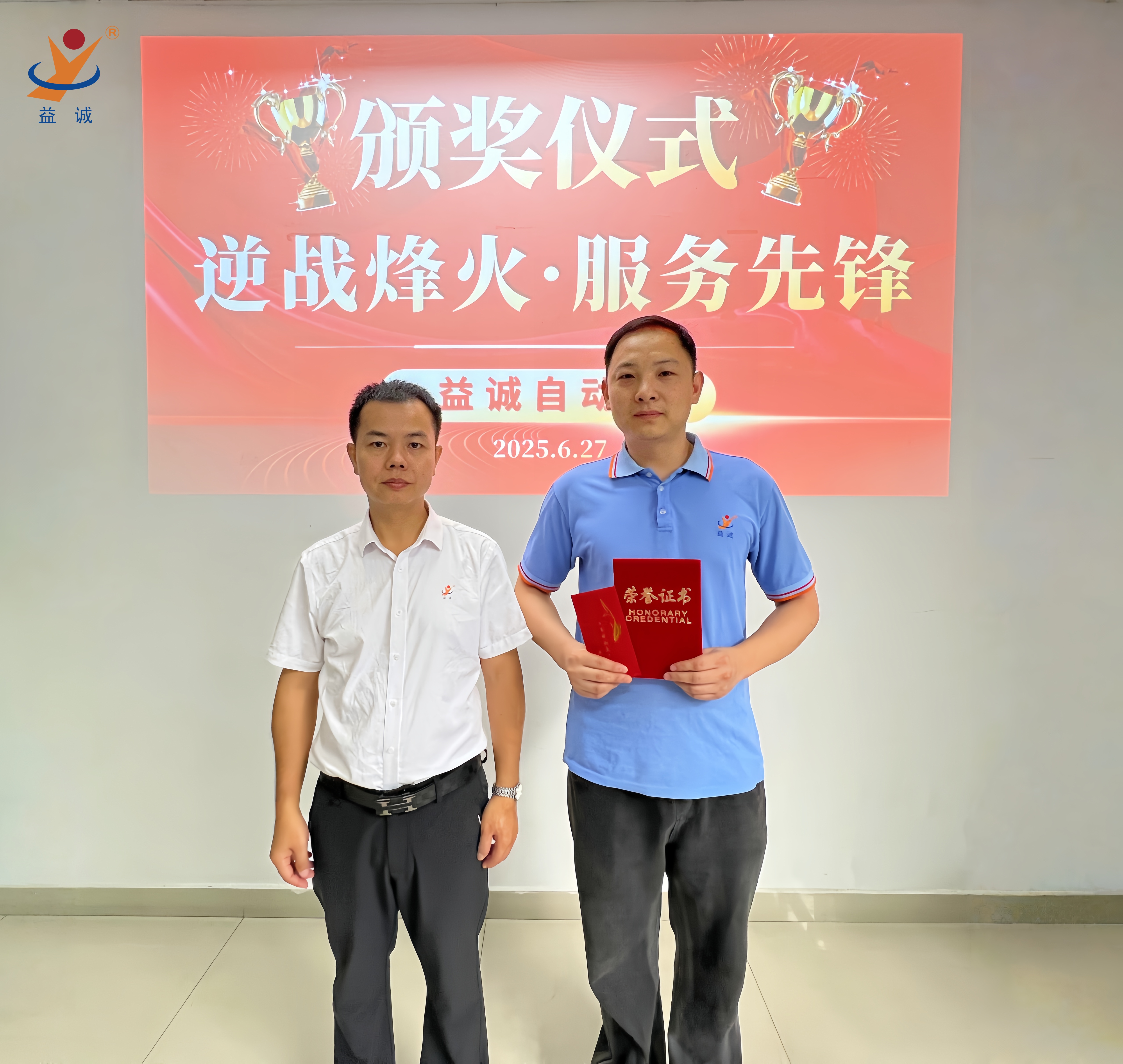 潘總經理表示:“你們穿越戰火的身影,正是益誠人服務精神的最好詮釋!你們用行動詮釋了益誠自動化的服務精神—客戶至上、使命必達,用專業與勇氣寫下了益誠跨國服務的非凡篇章。我相信,在優秀益誠人的共同努力下,益誠在全球化服務的征程將再創輝煌!"