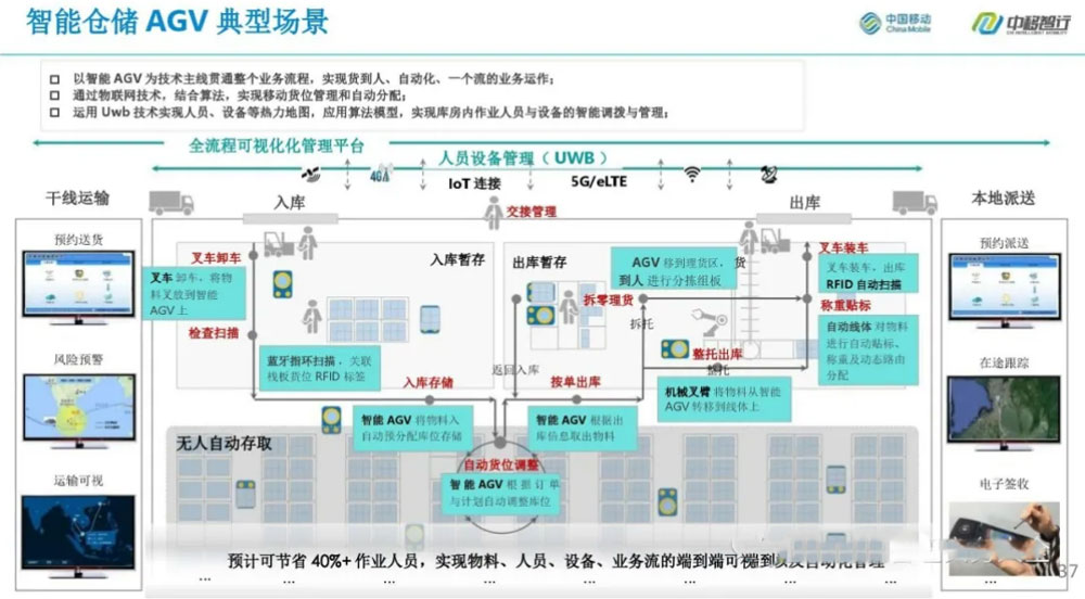 以智能AGV為技術主線貫通整個業務流程,實現貨到人自動化,一個流的業務運作;